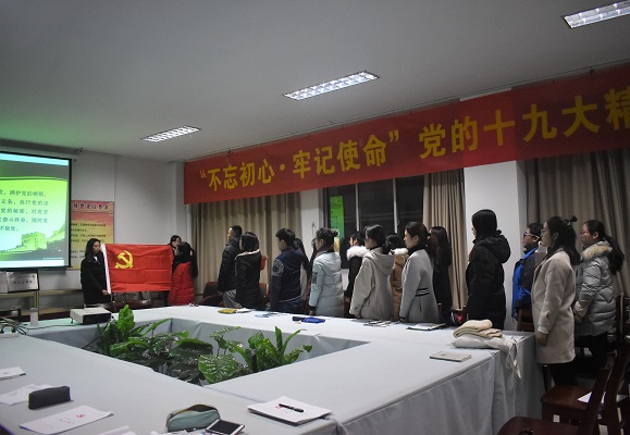 会议最后,由元老师做最后总结。首先,她对成为预备党员的同学们表达了祝贺;其次,她希望同学们戒骄戒躁,继续努力,并送上了寄语——“我们可能无法按照预定时间抵达自己的港湾,但是我们要保持正确的航向”。在元老师的带领下,大会进入最后的入党宣誓环节,全体党员师生和新发展党员高举右拳,齐声面对党旗宣誓,在铮铮的誓词声中本次会议落下帷幕。