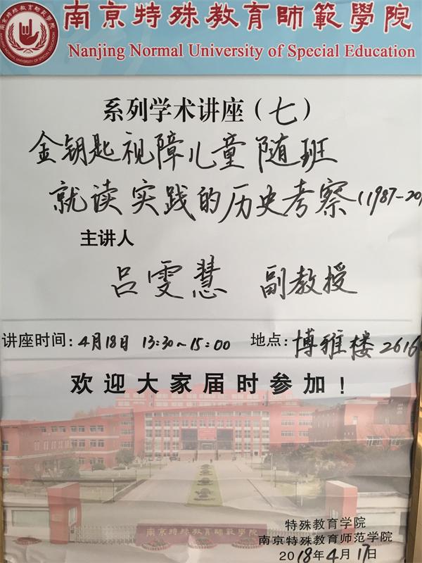 系列学术讲座(七)——金钥匙视障儿童随班就读实践的历史考察