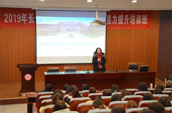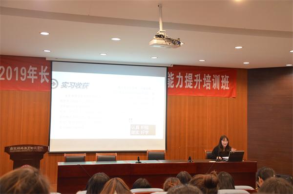 接下来,魏婷婷和丁志辉两位老师代表特教公司实习指导老师发言。魏婷婷老师在发言伊始,就抛出三个问题“实习前,我想得到什么?”“实习中,我做了什么?”“实习后,我还要做些什么?”,通过问题,引发大家思考,进而引导大家明确目标、寻找差距、制定计划并付诸实践。丁志辉老师肯定了15级本科实习生在教育实习过程中的表现,并对全体实习生提出更进一步的要求,希望大家在今后的学习中要继续加强理论学习,夯实理论基础,强化教师技能训练,以理论为基,以实践为本。