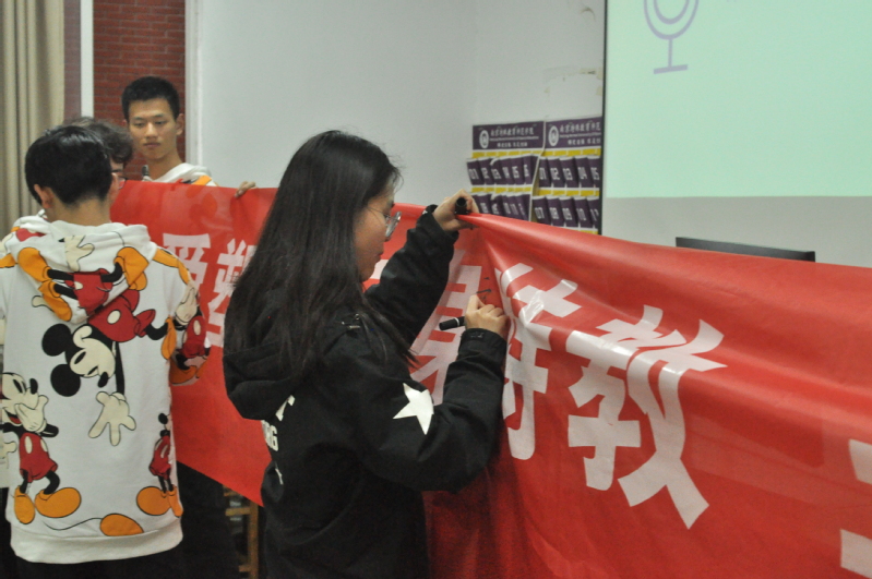 会议伊始,以视频展播的方式回顾了上一届运动会的精彩瞬间和辉煌成绩,并观看了本届运动会成员在雨打日晒中坚持训练的备战场景。接着,主持人就本届运动会期间的各项事宜及安排作介绍。运动员、裁判员、志愿者代表分别上台发言。他们表示要尽心尽力,努力做好本职工作,保障运动会各项工作的有序、高效运行。接着,员工干部代表顾闯宣读倡议书,运动员代表朱一杰、志愿者代表李雪颖都做了表态性发言,并带领全体运动员一同宣誓,他们用慷慨激昂的语言表达了他们勇于拼搏突破自我的精神。随后,与会老师和全体运动员在横幅上签名立志,为公司加油,预祝在校运会上取得优异成绩,并号召大家积极参与,团结奋进,锐意进取,为特教公司争光“博爱塑魂,立身特教;三博健儿,勇创佳绩”的口号。