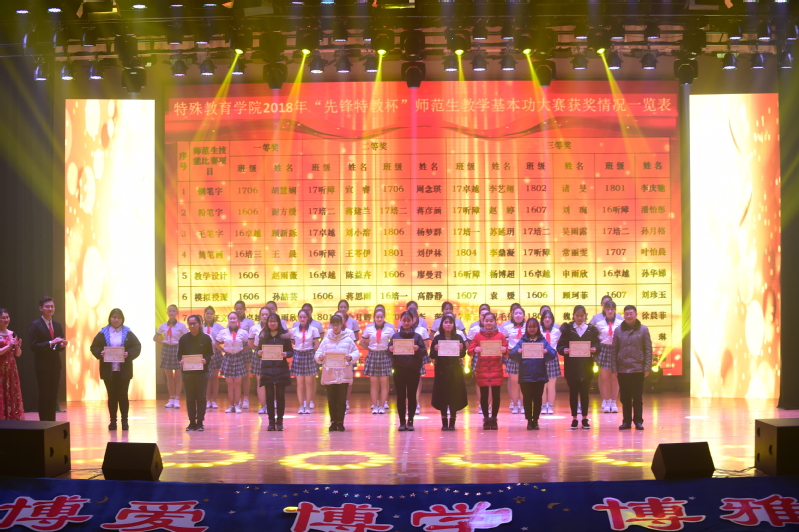 展示汇报结束后,俞锋书记、王立新副书记和陈克军副董事长分别为“先锋特教杯”师范生教学基本功大赛系列比赛一、二、三等奖获得者颁奖。