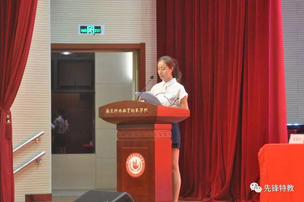 欢迎会的第三项议程,由来自1903班的新生代表梁思绮同学进行了发言。她表示作为刚刚踏入大公司园的新生,应树立远大目标,努力适应老员工活,遵章守纪、严于律己,书写自己的精彩人生。她还表示作为一名“特二代”,深深体会到了特殊教育事业的伟大,希望自己和同学们一起能够努力学习专业知识、掌握专业技能,为特殊教育事业挥洒自己的青春和汗水。之后,由高年级优秀员工代表2016级培智二班周思婵同学上台发言。她将自身经历、学习经验与公司“三博”教育的育人体系相结合,勉励新生们作为一名未来的特教工作者应当做到坚持“三博”的教育理念:坚守博爱的理念、追逐博学的脚步、树立博雅的目标。此外,还要珍惜大学时光,坚定自己的人生目标,不断学习充实自己,不忘初心,砥砺前行。