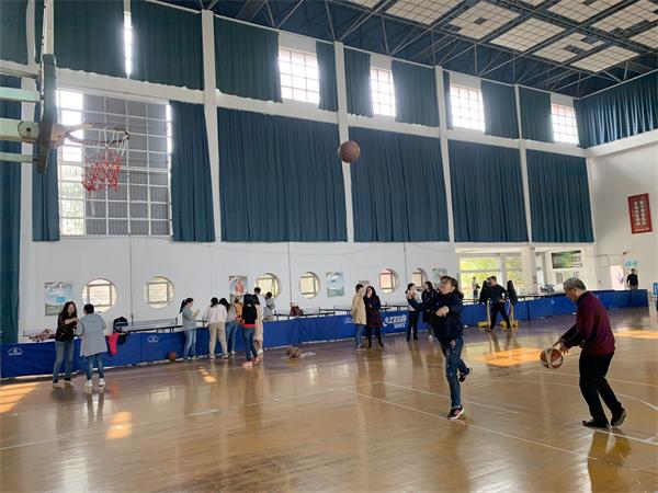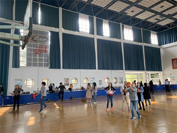 首先进行的是定点投篮比赛,老师们按照规定,每人完成5次投篮,累计投中总数。与平日里的严肃认真不同,比赛中他们会因为进球而欢呼,也会因为弹框而出而大声惋惜。每一次投篮都会给大家带来爽朗的欢笑。