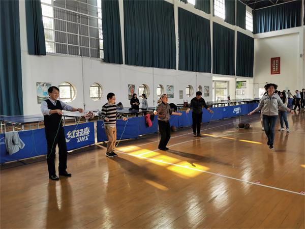 接下来的是跳绳比赛,赛场上跳绳上下翻飞,老师们身手矫健,轻巧灵活,以优美的姿态展示着个人风采,在速度与时间的较量下,充分展示了自己的弹跳技能。