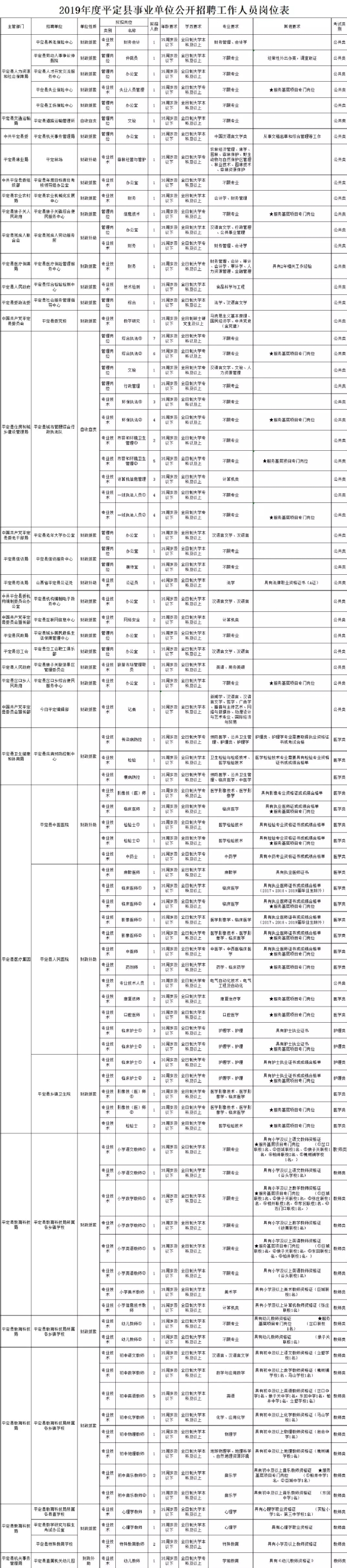 见附表:《2019年度平定县事业单位公开招聘工作人员岗位表》