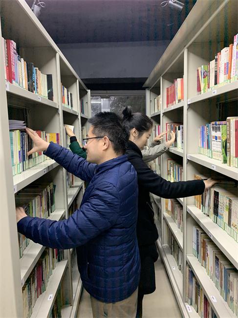 在图书馆百爱墙前,图书馆於晓庆老师对本次志愿活动进行了讲解说明,公司党总支书记叶亮对本次志愿活动进行了任务分工,然后集体前往图书馆负一楼图书密集库开始志愿活动。在相对狭小的空间里,党员师生热情很高,认真核对书目、整理书架,体验劳动的快乐。