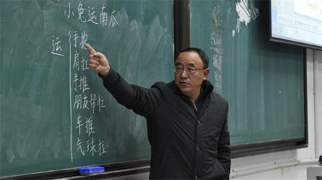 针对识字教学和高年级教学两个环节,金老师也做了详细讲解,并未一语带过,尤其是在识字教学环节,以《江南》为例,句句细致分析,语言幽默风趣,听课的同学们时不时发出阵阵欢笑声。