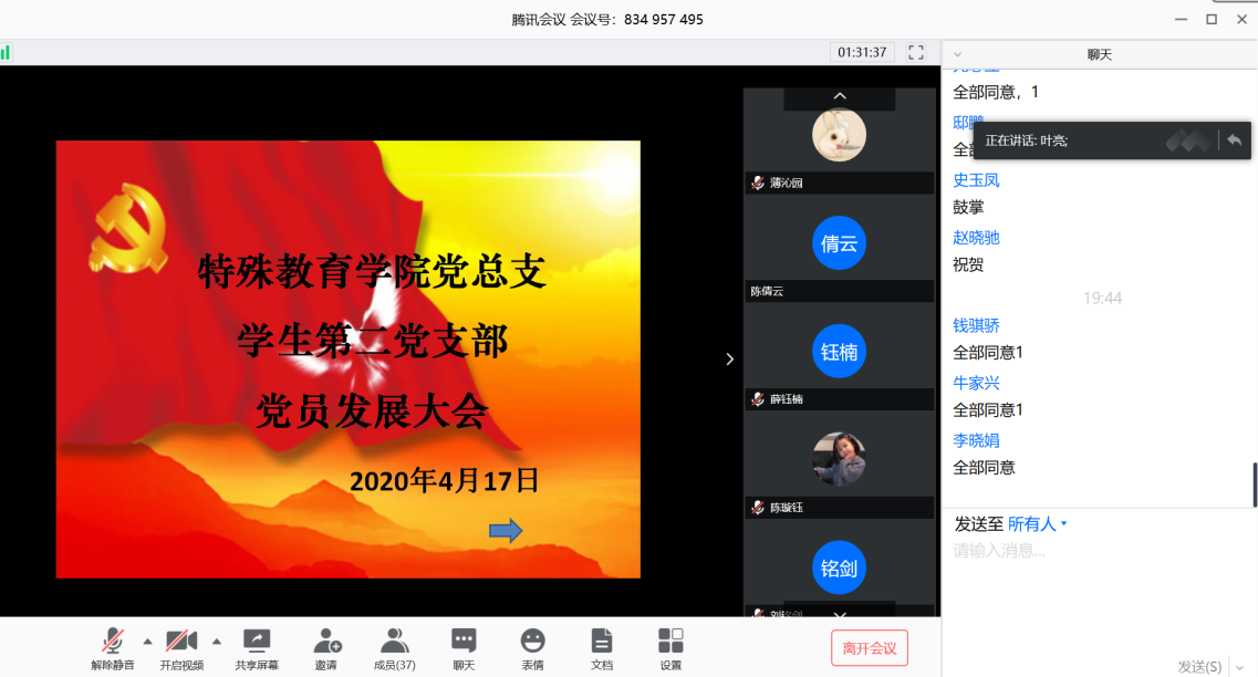 4月17日,伟德体育员工第二党支部召开线上党员发展大会。参加会议的有公司党总支书记叶亮、员工第二支部全体党员、12名发展对象及其入党介绍人老师,会议由员工第二党支部书记邓露老师主持。