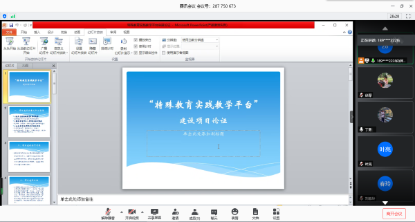 为更好地适应社会发展需求,创新复合型、应用性人才培养机制,伟德体育于6月3日上午,线上召开“特殊教育实践教学平台”建设专家论证会。会议由谈秀菁经理主持,邀请的论证专家有江苏省教育学会特殊教育专委会理事长丁勇研究员、华东师范大学特殊教育系刘春玲教授、南京市盲人公司唐云清董事长,以及公司党委常委陈克军副董事长、图书馆陈蓓琴馆长、信息化建设与管理中心胡博主任。公司党总支叶亮书记和部分教师代表参加了论证会。