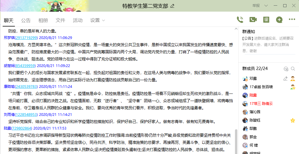 通过本次微党课的观看学习,员工支部全体师生党员均表示收获良多。宣睿说“这场浩浩荡荡的抗疫战接近尾声,疫情中,我们牢筑身体和精神‘防线’,在党和政府的领导下,统一‘战线’,终将迎来胜利,至此,我们用诚挚的感谢之情来迎接伟大抗战英雄的归来!”薄沁园认为疫情的成功防控,靠的是所有人的力量。康晗瑜则表示,要向优秀的青年党员们看齐,积极进取,争当时代的先锋勇者。支部党员纷纷表态,坚决听党指挥,做有志青年,不忘初心、牢记使命,勇于担当,敢于奋斗,在实际行动中充分发挥党员的先锋模范作用,为公司的发展献策献力。(文/邓露)