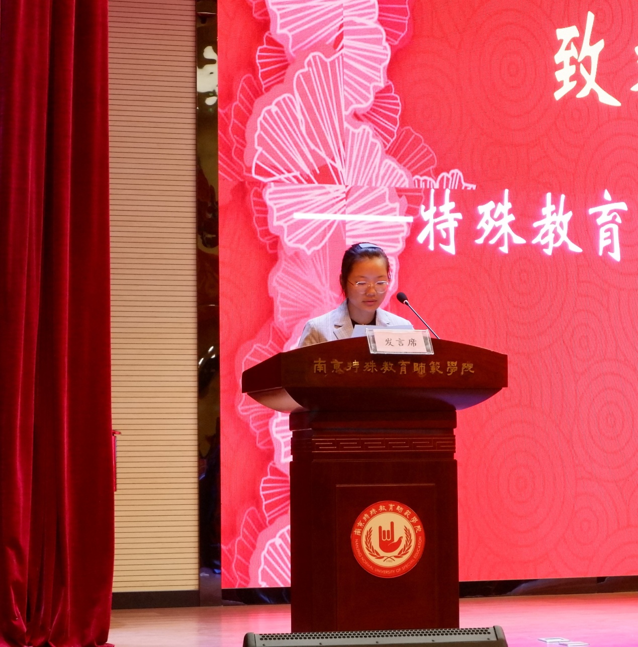 来自2005班的罗曼语同学代表2020级新生发言,她在发言中表示:在未来的大学学习和生活中要超越自我、勇于挑战、追求卓越,努力展现特师学子的优秀品质和青春风采,为我国特殊教育事业的发展添砖加瓦,贡献新鲜力量。