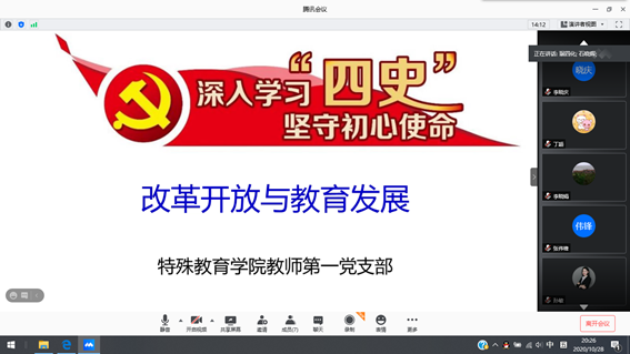 教师第一党支部结合“四史”专题教育活动,以《改革开放与教育发展》为主题,通过网络会议形式举行书记上党课活动。党课从重视教育发展、通过法律法规保障教育发展、促进教育公平、全社会支持教育发展这四方面回顾了中国教育特别是特殊教育发展中的大事及其深刻内涵,分析了改革开放这一伟大国策在教育事业发展中的重要作用。党员教师通过此次党课更加深刻认识到自身在促进我国特殊教育事业发展中的责任及今后的工作方向。