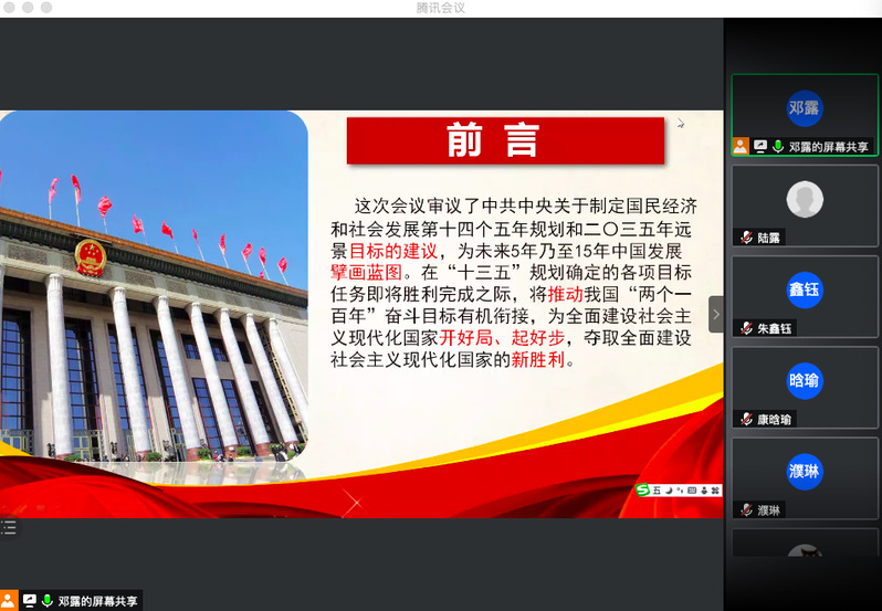 首先,各支部书记带领党员学习党的十九届五中全会主要精神。党的十九届五中全会是在当今世界正经历百年未有之大变局、我国正处于“两个一百年”奋斗目标的历史交汇点上召开的一次重要会议。全会高度评价决胜全面建成小康社会取得的决定性成就,深入分析我国发展环境面临的深刻复杂变化,提出到二〇三五年基本实现社会主义现代化的远景目标,提出“十四五”时期经济社会发展指导思想和必须遵循的原则和经济社会发展主要目标。