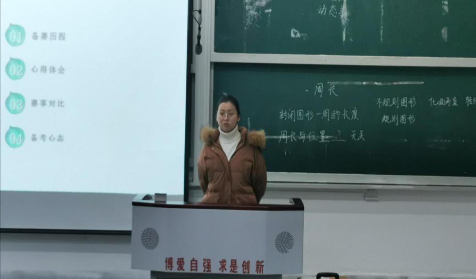 为了更好的宣传本次大赛,吸引更多优秀的同学参加到师范生基本功的选拔工作中来,身为参赛选手的主持人陆露全面而详实地介绍了江苏省师范生基本功大赛的赛程、比赛办法和评分规则,通过介绍,在座的同学们对大赛有了深入而全面的了解。