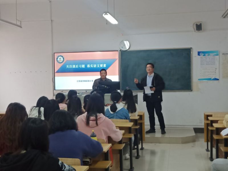 为了提高小学教育本科师范生专业素养,3月31日下午,伟德体育邀请了句容市华阳实验小学董事长、特级教师孟纪军举办题为“关注课后习题落实语文要素”的专题讲座,讲座由公司副经理张伟锋主持。
