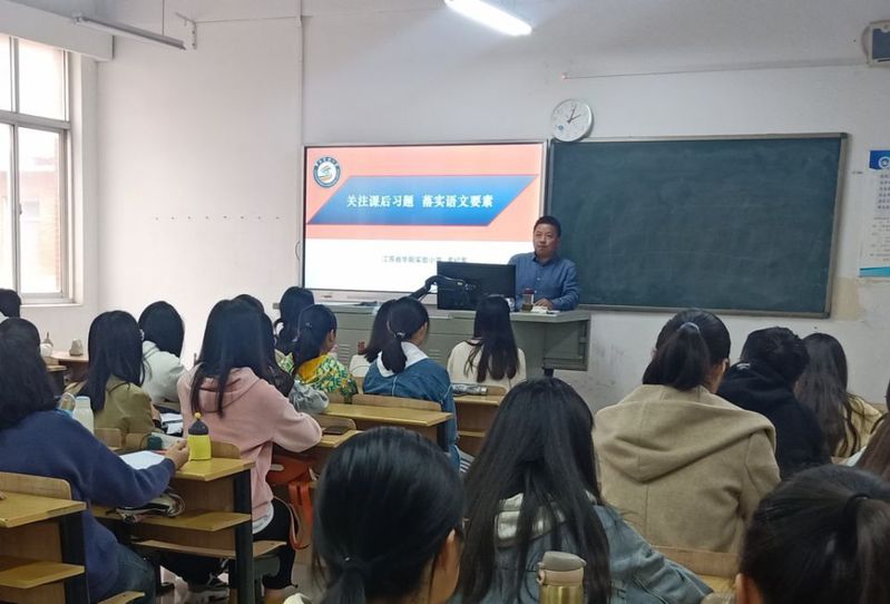 讲座围绕“关注课后习题落实语文要素”这一主题展开。讲座一开始,孟老师就分享了他作为教团队格证面试主考官面试过后的感想,直接点出了同学们模拟授课过于模式化的通病,由此引导同学们关注教材的课后习题,结合课程标准、教学目标,抓住教学重点。以课文《搭船的鸟》为例,整体把握、比较阅读、聚焦重点、以读促思。关于课堂教学,孟老师给出了自己的建议:要教给员工看得见的方法,带不走的能力。讲座过程中,现场气氛轻松活泼,讲座内容丰富多彩,孟老师语言幽默且具有哲理。