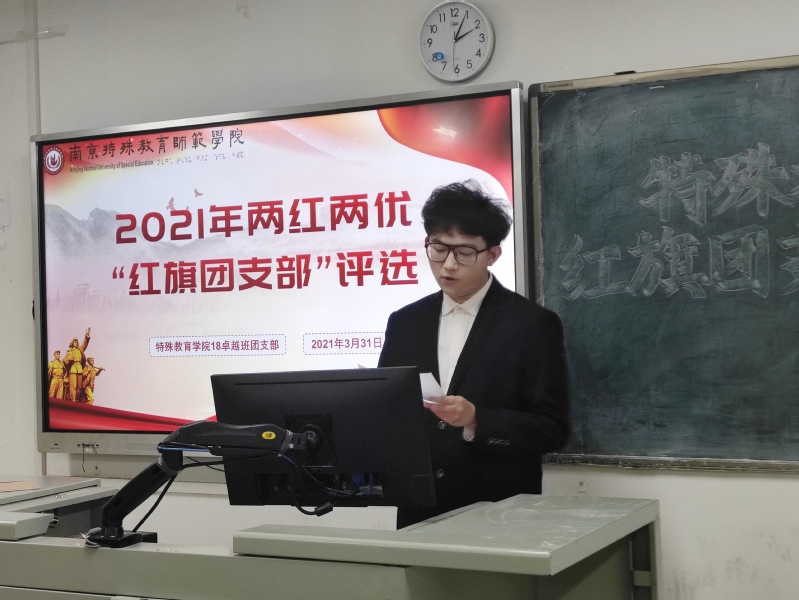 会议伊始,主持人向全体人员介绍五四红旗团支部评比相关流程、要求及红旗团支部建设标准。随后18、19和20级共25位团支书代表各团支部做工作汇报。期间各团支部书记依据工作开展情况围绕思想引领、组织建设、制度建设、班级荣誉、团日活动、活力提升、未来展望等以PPT形式进行汇报。向老师及同学们展现本团支部一年来的工作成果,并满怀热情地表达了对本班团支部未来建设的展望。
