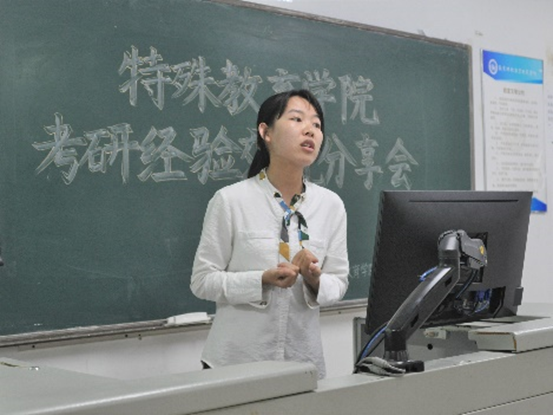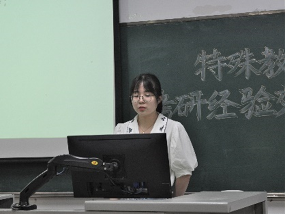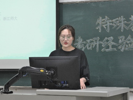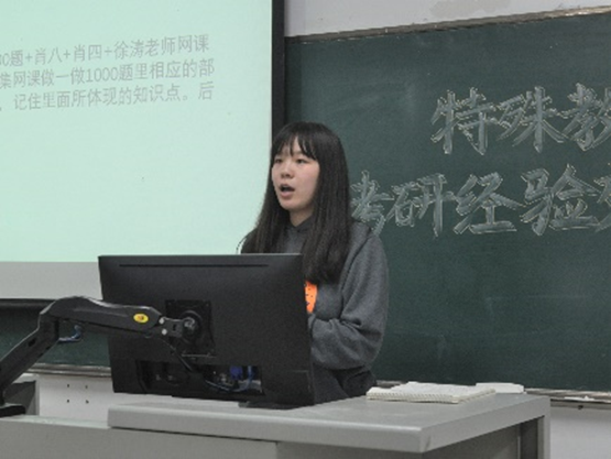 会议开始之前由辅导员王赫煊介绍本次活动的目的、意义,总结了之前对同学们考研做的一些实地调研和问卷调查情况,分析了目前院里员工关于考研的状态和想法。