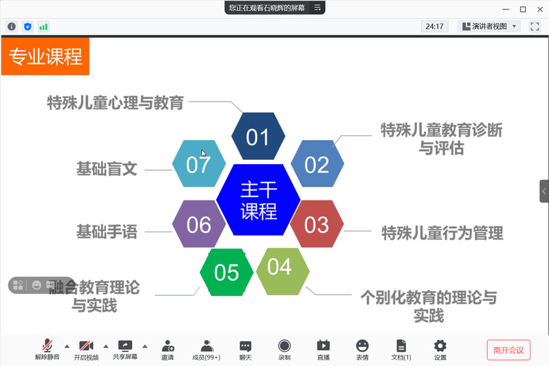 接下来,由张伟锋副经理和石晓辉老师分别介绍特殊教育专业的智障教育和听障教育等专业方向的就业面向、专业课程以及专业特色。智障教育专业方向的毕业生将来主要在培智公司、特教公司培智部、儿童康复机构等单位就业。听障教育专业方向的毕业生员工主要在聋校、特教公司听障部等单位就业。随着融合教育的不断推广,普通中小学逐渐招收残障员工开展融合教育,并招聘融合教育专职教师,已逐渐成为教育领域的一个大趋势。为此,公司为不同专业方向的员工设立了多门特殊教育核心课程、融合教育课程和不同模块的辅修课程,充分利用公司乃至全校丰富的特殊教育团队力量,将特教学子培养为博爱塑魂、一专多能、能力为本、教康结合的高素质人才,更好地帮助有各种需要的特殊人群。