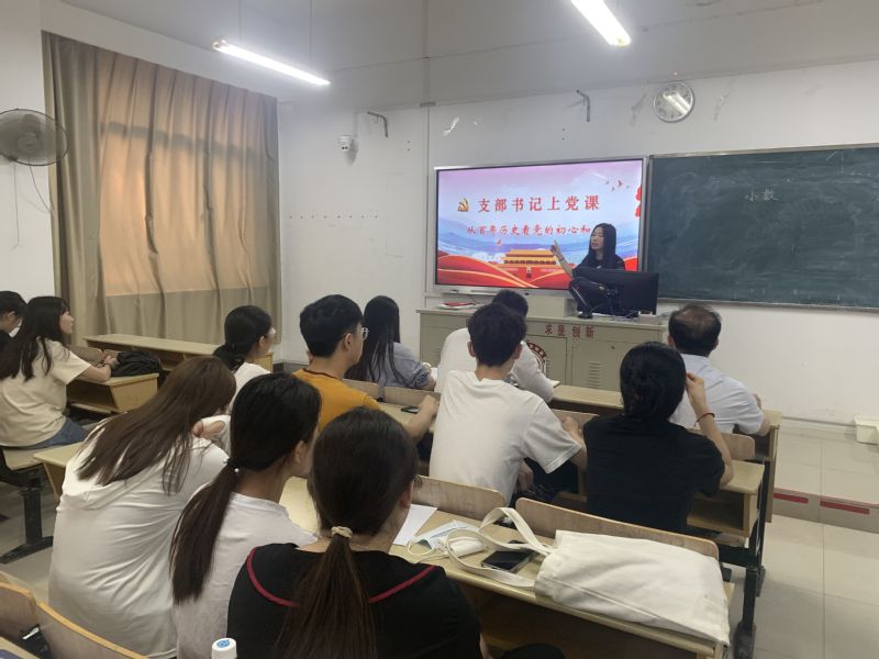 随后,邓露老师以《从百年历史看党的初心和使命》为主题,为支部全体师生党员讲党课。党课重温了党史发展的三大阶段:新民主主义革命时期、社会主义革命和建设时期、改革开放和中国特色社会主义建设新时期。党史告诉我们:无论在什么时期,中国共产党的初心和使命都是为中国人民谋幸福、为中华民族谋复兴。