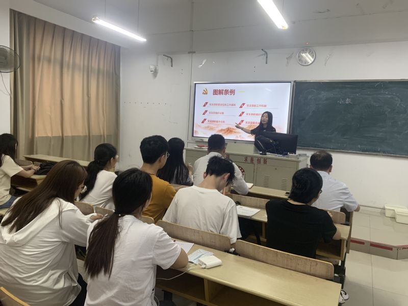 邓露老师首先带领大家学习了《中国共产党支部工作条例(试行)》,对《条例》中的党支部职责定位和工作原则、组织设置、基本任务、工作机制、组织生活以及党支部委员会建设六个方面内容进行了解读。