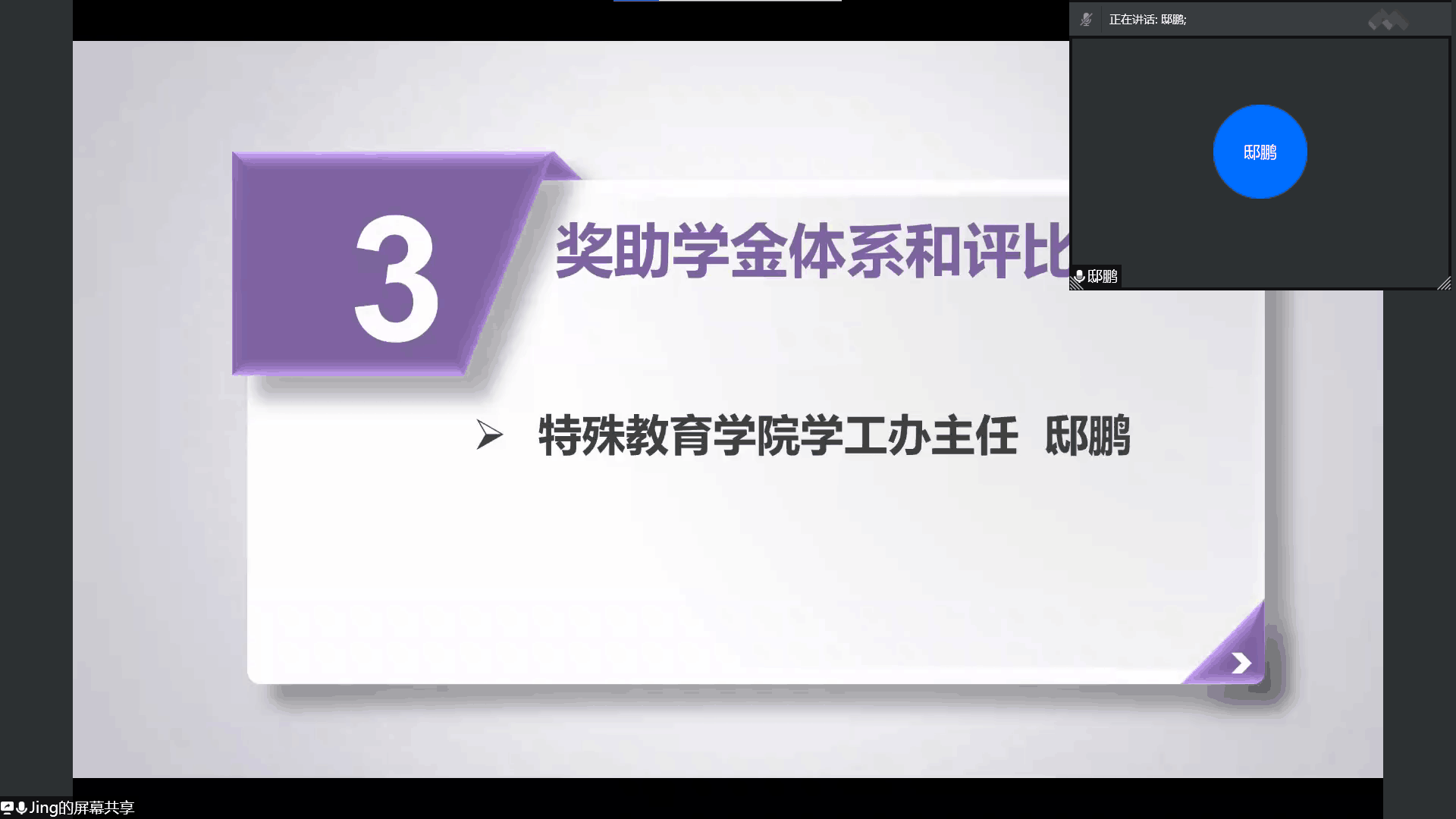学工办负责人邸鹏老师向2021级新生详细地介绍了奖助学金体系与评比方法,进一步让新生同学明晰了公司的奖助制度与具体细则。同时,还对公司新生提出勉励与期望,激励新生勤勉学习、携手共进、共同成长,用青春活力与创造力为公司的发展助力。新生辅导员李欣璟老师详细介绍了公司新生分班情况、员工工作相关部门、辅导员与班主任工作职责、请销假制度、宿舍卫生和安全制度等,使新生多角度、深层次地了解公司相关情况。新生辅导员傅康老师倡导全体新生要树立“三个意识”、培养“两种能力”。配合疫情防控的大局意识、线上教学安排的纪律意识与互联网社交的思辨意识;着重培养多角度看问题的能力与独立自主解决问题的能力。最后,两位辅导员老师就新生关于入学方面的疑问一一解答。