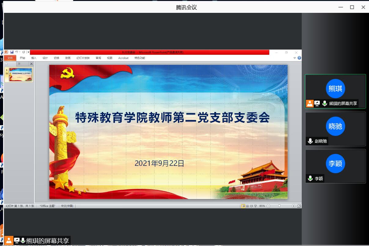 为开好本次支部党员大会,9月22日下午,伟德体育教师第二党支部在线召开支部委员会会议,党支部书记熊琪主持会议,就深入开展“两在两同”工作、合格评估、开展主题党日活动等内容与其他两位支委进行了深入的讨论。