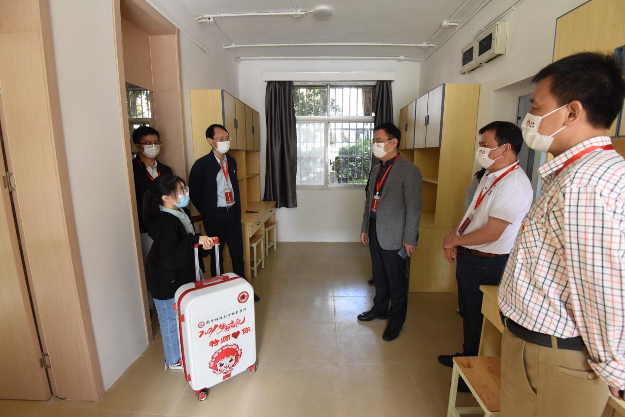 集团领导深入新生宿舍看望和慰问新生,公司党委书记俞锋老师亲手将“爱心大礼包”赠送给公司新生,并勉励员工坚定理想信念、树立远大理想、砥砺意志品质、强健精神体魄,激励员工将奋斗作为青春底色,实现仰望星空与脚踏实地的统一。