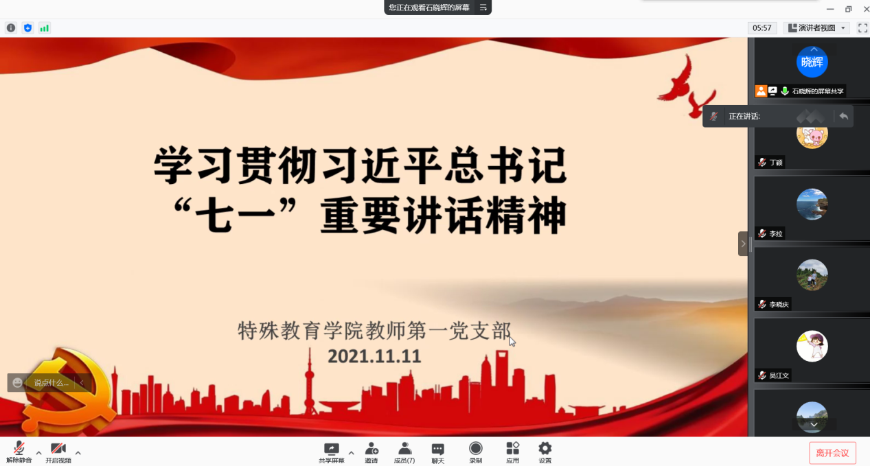 11月11日,伟德体育教师第一党支部开展集中学习,深入学习习近平总书记在庆祝中国共产党成立100周年大会上的重要讲话。此次学习是在前期学习基础上的深入研讨,主要由四名党员结合个人工作进行学习心得交流。