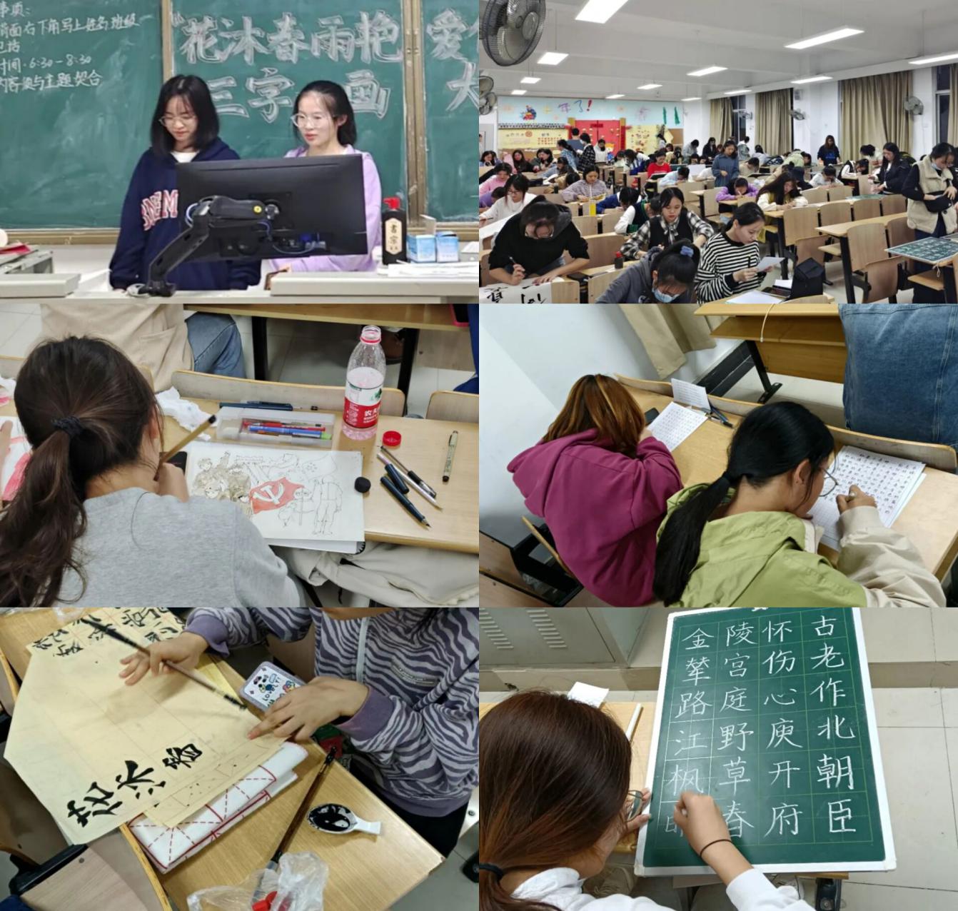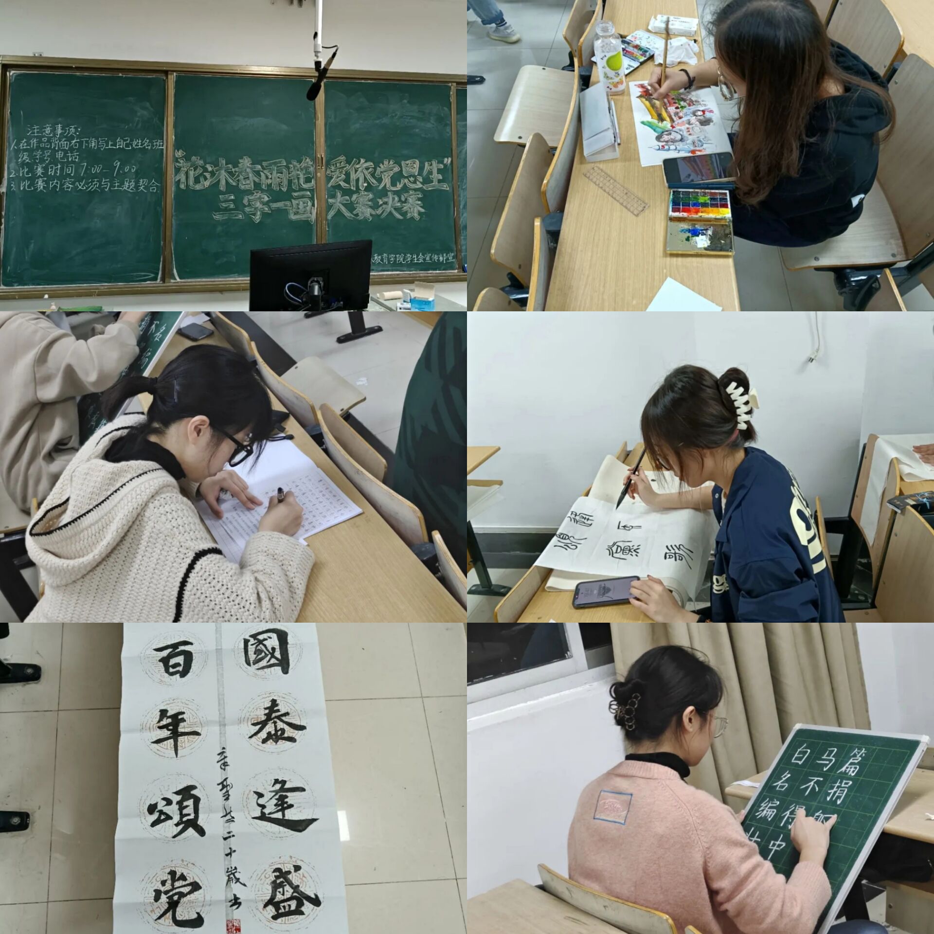 为庆祝中国共产党百年华诞,提升师范生“三字一画”基本技能,伟德体育于2021年11月举办“花沐春雨艳,爱依党恩生”绘写大赛。绘写大赛分为初赛、复赛、优秀作品展三个环节,包含简笔画、钢笔字、毛笔字、粉笔字四个项目。