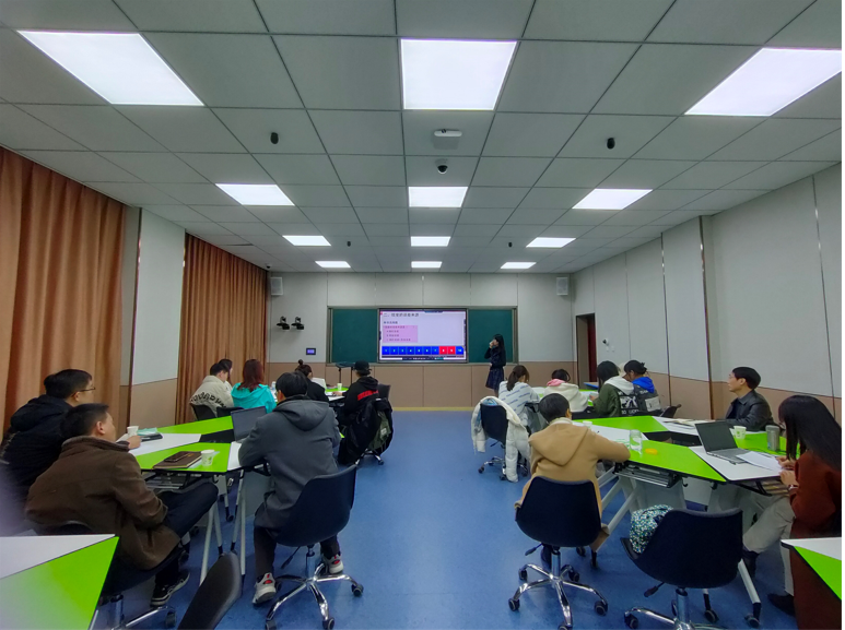活动伊始,由孙敏老师上智慧教学研讨课《效度的再认识》,该课题是《教育测量与评价》课程的主要内容之一。孙老师精心准备,将自身的教学基本功和信息化教学手段紧密结合,展现出良好的教学效果和课堂互动。在课堂上,孙老师对主要教学内容进行介绍,随后利用智慧黑板的抢答功能与同学们进行互动,充分调动了员工们的积极性和参与度。通过引入案例,引导同学们展开讨论,使同学们在课堂教学中将知识与实际相结合,对知识的有用性有了更加深刻的理解。