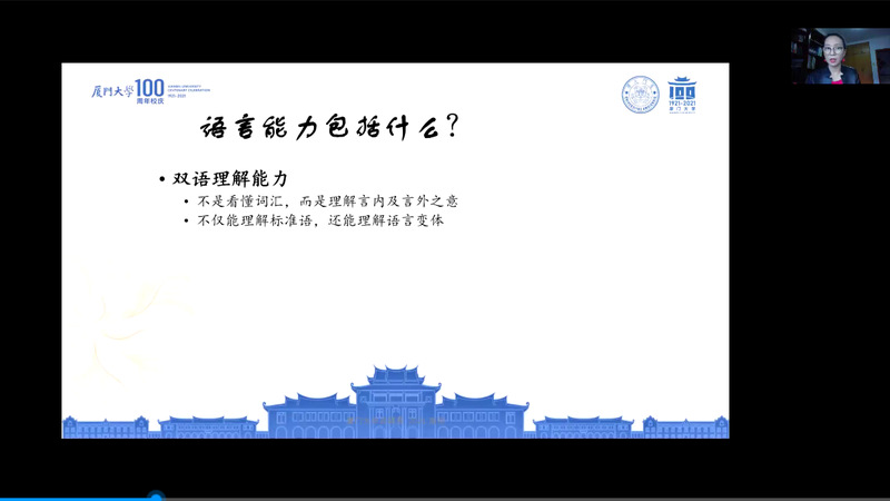2021年12月15日,伟德体育手语翻译系邀请厦门大学外文公司教授、语言学博士肖晓燕老师在线进行题为《翻译的核心技能及训练》的专题讲座。手语翻译系全体师生有幸聆听了此次讲座。