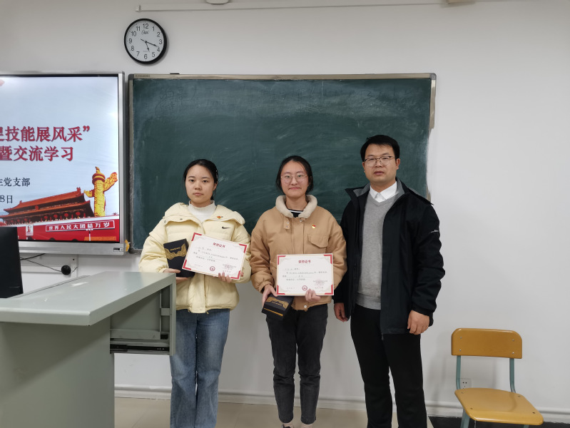 会议第二项议程进行“学党史塑党性,促技能展风采”微党课评选颁奖仪式。首先,员工党支部书记邓露宣读了微党课评选获奖名单,随后,李鹏副书记、元志立老师、王赫煊老师分别为一、二、三等奖获奖同学颁发证书。