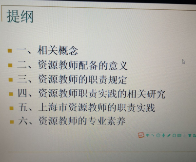 于教授的讲座主要围绕资源教师的概念、资源教师配备的意义、资源教师的职责规定、实践的相关研究、上海市资源教师的职责实践、资源教师的专业素养六个方面展开。