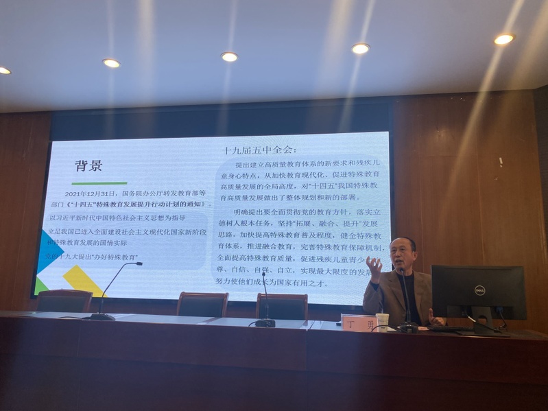 3月9日下午,伟德体育特邀中国教育学会特殊教育分会副理事长、江苏省特殊教育专业委员会理事长丁勇研究员做题为“推进特殊教育高质量发展的行动纲领”的专题学术讲座,对国务院办公厅转发的《“十四五”特殊教育发展提升行动计划》(以下简称《行动计划》)进行了深度解读。