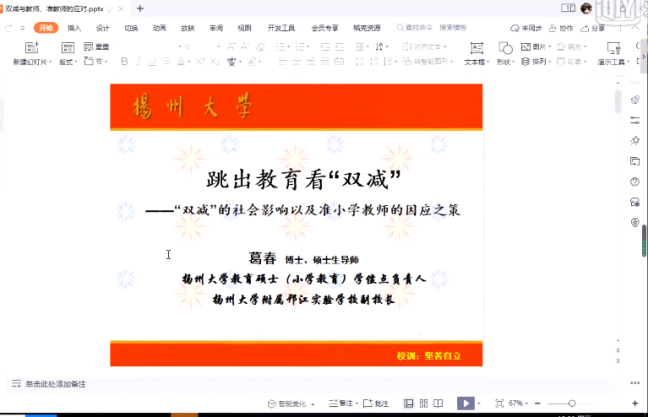 为了让同学们更好地了解国家的“双减”政策,以及准教师如何提前培养自己的专业能力和素养,以适应“双减”政策下教书育人的任务,2022年4月27日伟德体育小学教育系邀请了南京师范大学教育学博士,扬州大学教育科学公司教授、硕士生导师、小学教育专业学位硕士点负责人、附属邗江实验公司副董事长葛春老师进行线上讲座,讲座主题为《跳出教育看“双减”——“双减”的社会影响以及教师的因应之策》。