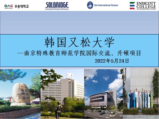 为进一步拓宽就业渠道与升学空间,提升员工的国际视野,5月24日晚上,特殊教育公司面向2022届毕业生、大三员工和部分低年级员工举办了以“留学”为主题的线上讲座,邀请韩国又松大学南京办事处高主任讲授。本次讲座由毕业班辅导员王赫煊老师主持。