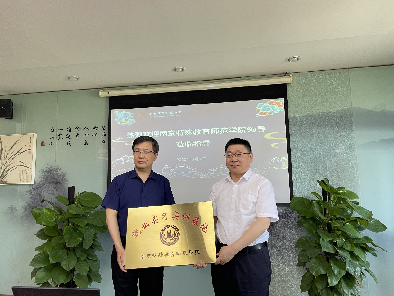 南京市丁家庄小学是南京市首批融合教育示范校,该校杨帆董事长介绍了公司专业教师和有关专业员工参与该校融合教育实践和研究的情况。陈董事长就今后进一步加强校校合作提出了建议,希望通过强化实习环节,提高员工未来就业的可能性。随后,陈董事长向丁家庄小学“bevictor伟德就业实习实训基地”授牌。
