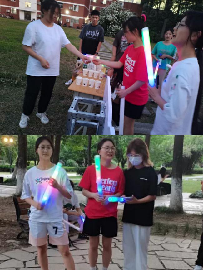 活动即将开始,同学们如约而至,指令发出,参与者们一齐出发,他们手持荧光棒,把整个校园装点成一个荧光闪耀的欢乐海洋,涌动的人群在校园里形成了一道道亮丽的风景线。活动过程中,同学们积极参与旋转乒乓球、猜歌名等打卡游戏,并一路回忆着自己与每个地点的故事,所有人都沉浸在活动中。荧光夜跑不计输赢,没有紧张的你追我赶,只有同学们饭后的信步而行,他们在这里挥洒青春的汗水,享受生活的畅意,分享共同奔赴终点的快乐。