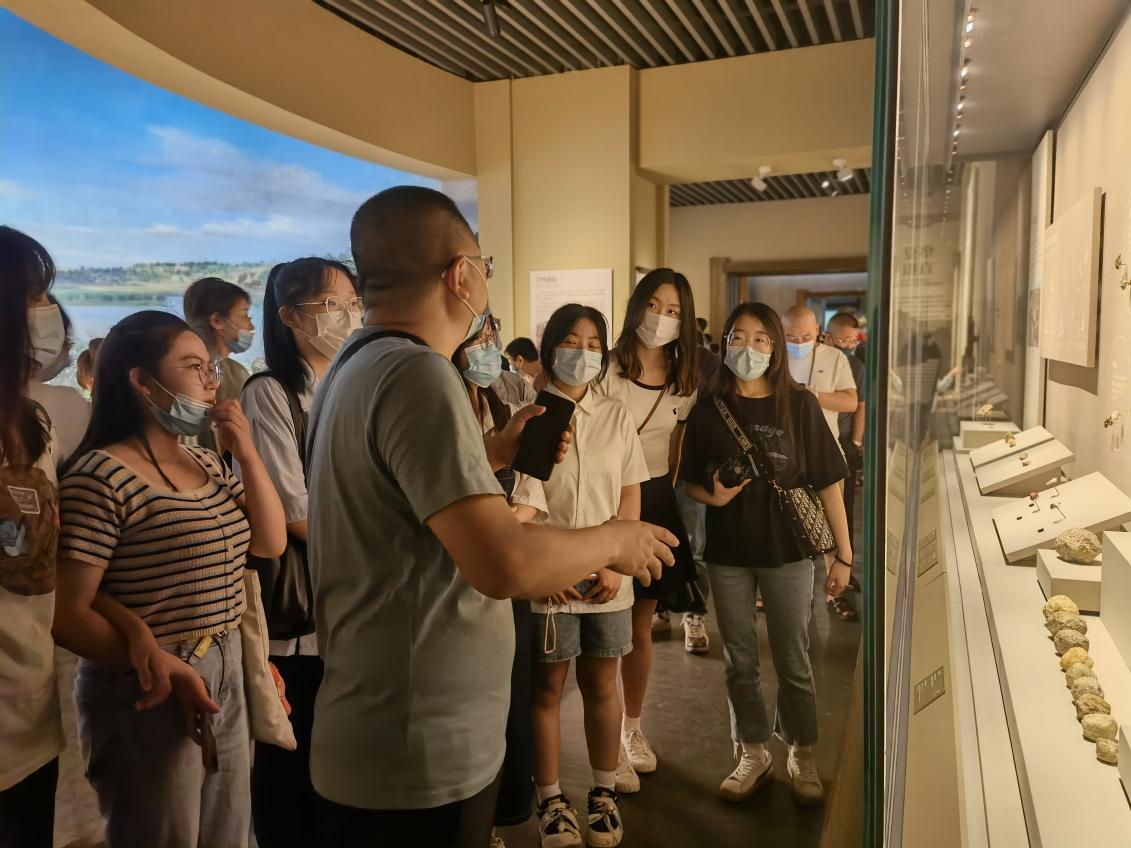 在许教授的带领下,实践团队参观了文明摇篮、夏商踪迹以及民族熔炉三个主要展厅,各展厅陈列的文物历史悠久,造型优美,历史感浓厚,同学们被说深深吸引。博物院各展馆充分展示了中华民族最具代表性的史前文明和夏商文化,是中华文明起源和文化基因血脉的生动诠释。同时,三晋大地作为中原与少数民族聚居的主要地区之一,不同历史时期的文化中包含了鲜明的民族融合的特点,充分体现出了中华民族共同体历史形成进程,彰显了中华传统文化兼收并蓄、多元一体的文化内涵和强大魅力。讲解嘉宾许栋教授以其专业的学术功底,渊博历史文化知识、幽默风趣的语言为同学们进行了专业又生动的讲解,通过讲解,同学们更加深了对中华传统文化的深入了解。