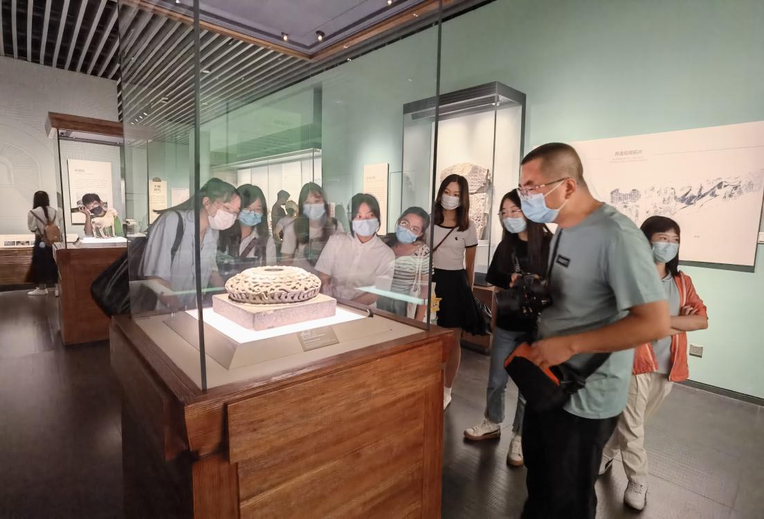 2022年7月20日实践小分队首先来到了龙城太原,第一站参观山西博物院。山西博物院是目前国内屈指可数的大型现代化、综合性博物馆之一。主馆共有四层,基本陈列以“晋魂”为主题,由7个历史专题和5个艺术专题构成。为深入了解当地历史文化,元老师专门邀请了太原理工大学历史公司许栋教授来担任本次实践的讲解嘉宾。