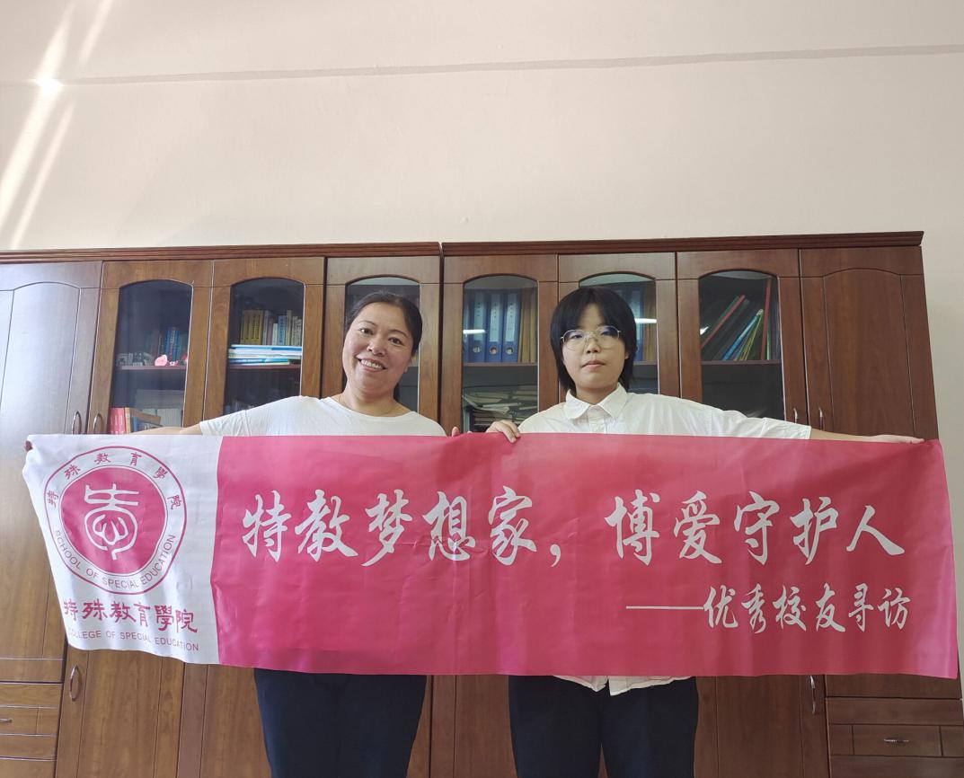 同时,欧阳老师也谈到了当时母校的口号“献身特教,无怨无悔”,直到现在她还是以这句口号为目标,希望自己在特殊教育战线上无畏奋斗,一生无悔。在工作中,她也是一直以此为动力,做好自己的本职工作。很多人都问她,你怎么能在特校呆这么多年?不会厌倦吗?但是欧阳老师觉得这就是她的工作,她喜欢和这些孩子在一起,她说“他们就像是我的家人,我在这,他们就会有了依靠,这也我的初心”。