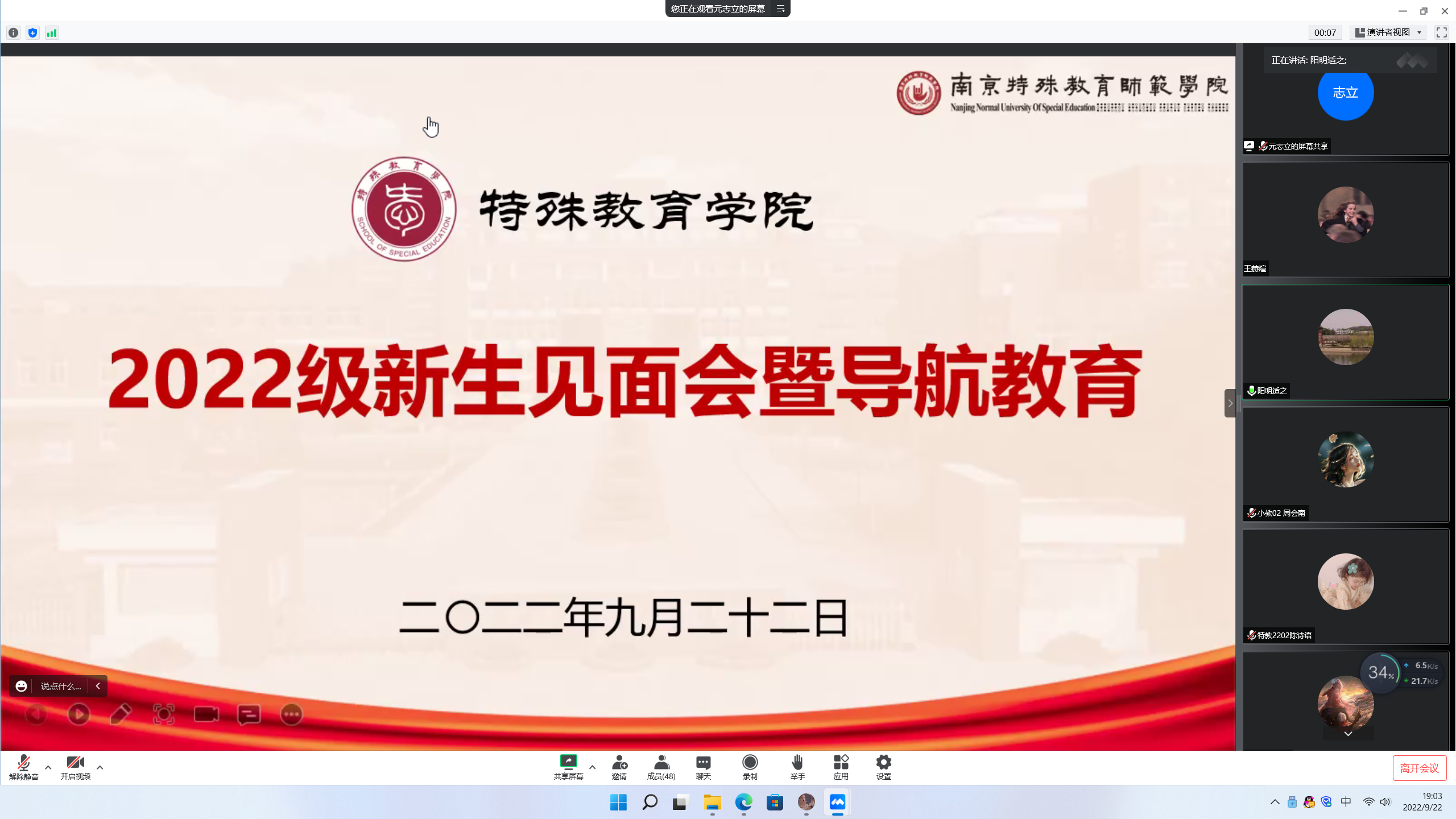 为增进2022级新生对所学专业的了解,更加明确学习目标、树立远大职业理想,伟德体育于9月22日晚举办“2022级新生见面会暨导航教育”主题活动。公司党总支书记叶亮、经理李拉、副书记李鹏、副经理张伟锋、特殊教育系主任陈琳、小学教育系主任赵文超、手语翻译系主任韩梅及带班辅导员和班主任线上参加,2022级各班新生在江宁校区教室参加,会议由学工办副主任元志立主持。