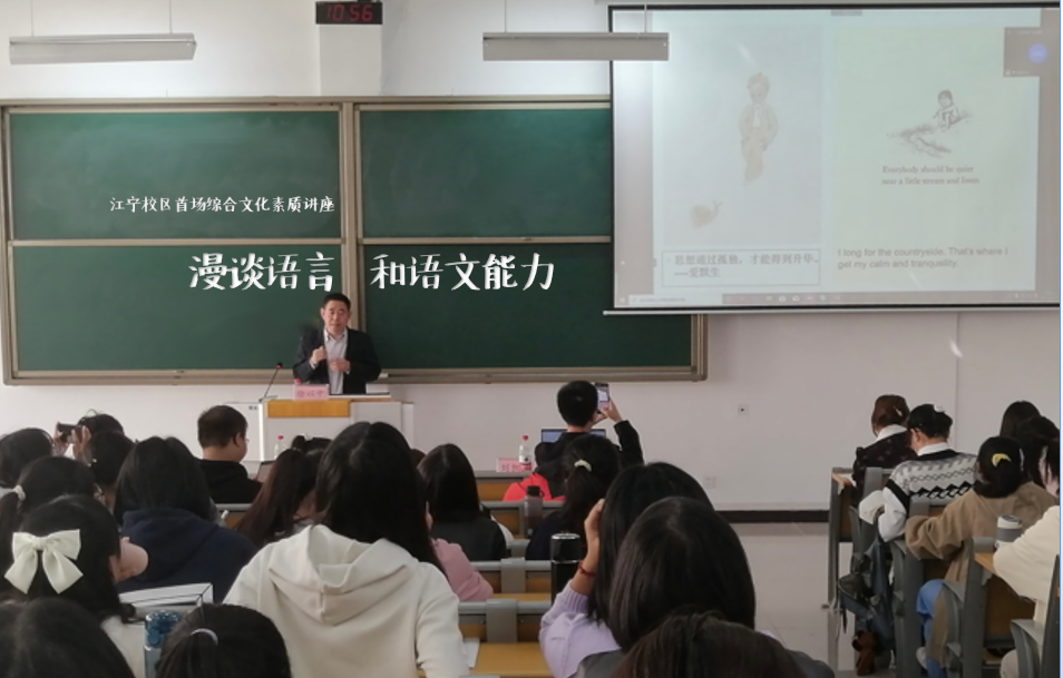 为加强老员工文化素质教育,培养创新型人才,促进公司老员工全面发展,公司江宁校区于1015日上午举办主题为“漫谈语言和语文能力——兼论新文科背景下人才成长的路径与策略”的综合文化素质讲座,特邀南京航空航天大学外国语公司副经理徐以中教授作为主讲嘉宾。活动由特殊教育学公司副经理张伟锋博士主持,采用主会场与分会场结合、线上线下同步直播的方式,江宁校区数百名2022级新生参加。