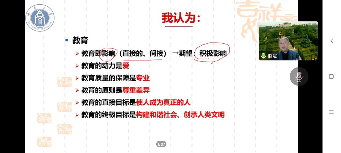 本次讲座赵斌教授进行了精心准备,在两个小时的线上讲授时间内,不仅信息量大,同时让我们感受到特教人对特教事业的热爱和激情。他的讲授深入浅出,让员工们对未来成为一个怎样的特殊教育教师有了更深入的思考,也给所有听讲师生关于做人做事的很多启发。最后,特殊教育系同学们围绕讲座内容向赵教授提出了一些专业问题,赵斌教授做了深入全面的解答,取得了非常好的讲座效果。(/陈琳 编辑/徐琴 审核/李拉)