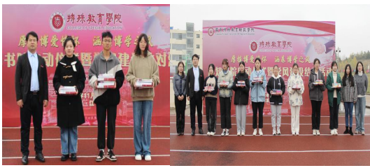师生交流发言环节结束后,主持人元志立公布了博知书院五个主体班班长名单,并颁发了聘书。同时分别向2022级9个班级(乡村教师计划专项班)的代表进行了赠书,采取漂流的方式进行班内传阅。活动最后,员工党支部书记邓露公布员工党员与新生班级结对名单,员工党员与新生班级代表手挽手合影留念,启动仪式和学风结对共建活动圆满结束。