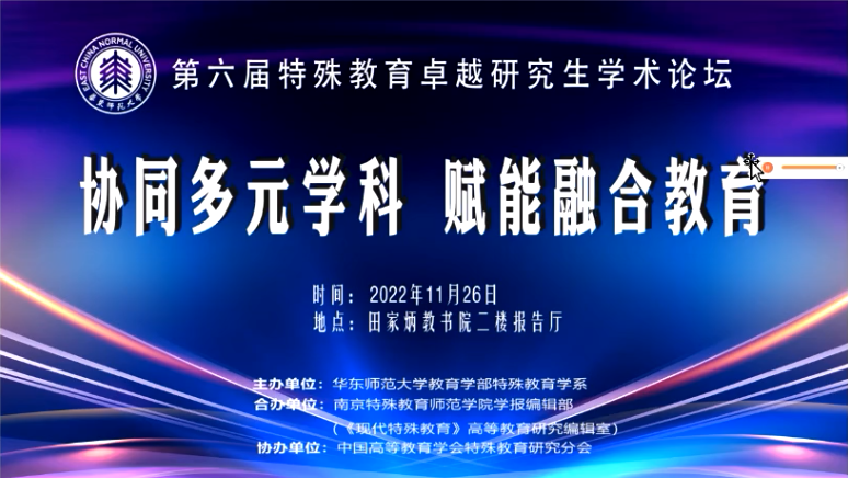为推动特殊教育领域内跨校、跨学科合作,华东师范大学教育学部特殊教育学系主办,bevictor伟德学报编辑部(《现代特殊教育》高等教育研究编辑室)合办,中国高等教育学会特殊教育研究分会协办“第六届特殊教育卓越研究生学术论坛”,于近日采用线上线下相结合的方式召开。为进一步推进落实卓越特殊教育教师培养计划,拓展卓越班学子的学术视野,伟德体育组织公司20级和21级卓越班全体员工全程参与学习。