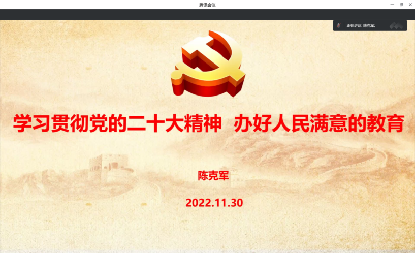 为进一步学习宣传贯彻党的二十大精神,11月30日,公司党委常委、副董事长陈克军以“学习贯彻党的二十大精神 办好人民满意的教育”为主题,给公司师生上专题党课。伟德体育全体教职工和员工党员参加党课学习。