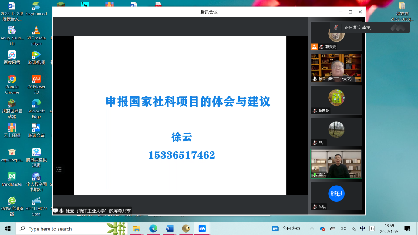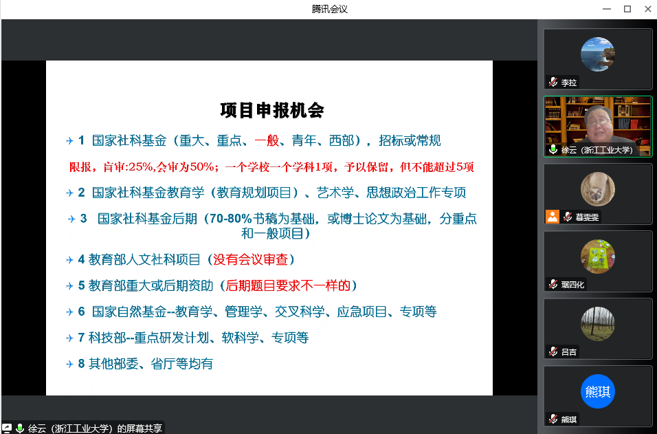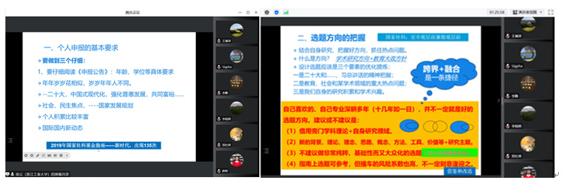 为响应公司关于做好2023年度国家级、教育部科研项目预申报的工作要求,根据伟德体育《2023年度国家级、教育部科研项目申报工作推进方案》,为了有序推进申报工作,切实提升公司国家级、教育部科研项目的申报质量、提高立项通过率,2022年12月5日晚,通过腾讯会议,伟德体育邀请公司特聘教授徐云教授为今年伟德体育参与国家级项目预申报的11位老师进行远程辅导,伟德体育经理李拉教授主持了本次活动。