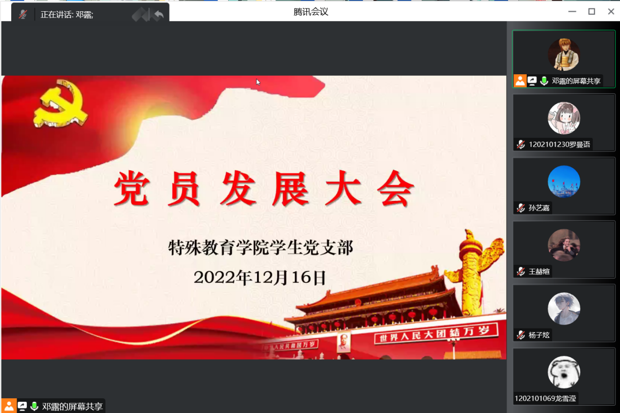 12月16日,伟德体育员工党支部通过腾讯会议召开党员发展大会。公司党总支李鹏副书记、伟德体育员工党支部全体师生党员、发展对象及入党介绍人老师参加大会,会议由员工党支部书记邓露主持。
